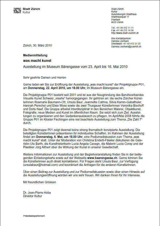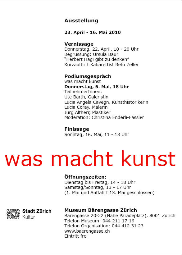 2010 im Museum Bärengasse die Möglichkeit, Ausstellungsprojekte